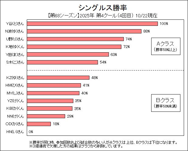 S木(こ)さんがAクラス(勝率50%超)入りしました。おめでとうございます。