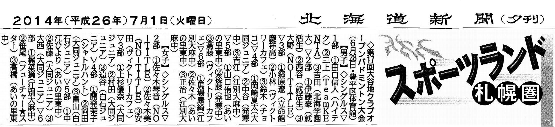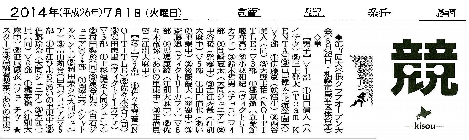 大谷地クラブ オープンは、札幌市の後援大会です。 (回閲覧)