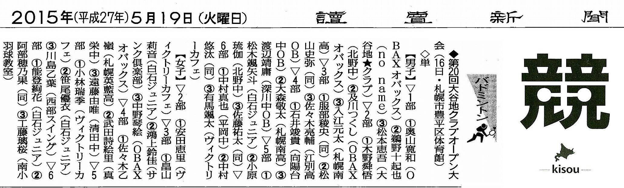 大谷地クラブ オープンは、札幌市の後援大会です。 (回閲覧)