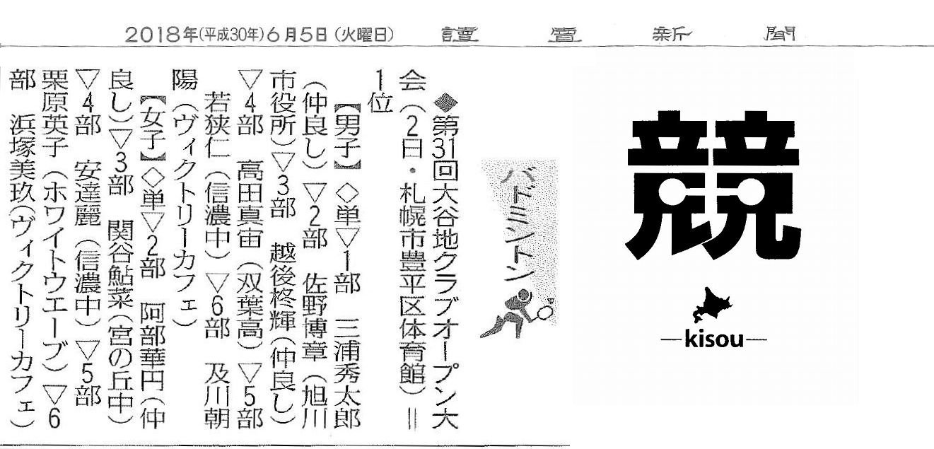 大会結果(北海道新聞,札幌版 6/5(火)夕刊)