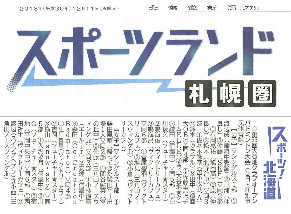 大会結果(北海道新聞,札幌版 12/11(火)夕刊)