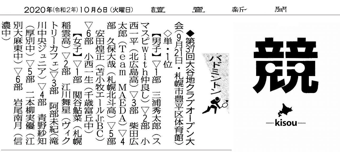 大会結果掲載【北海道新聞(札幌版)】