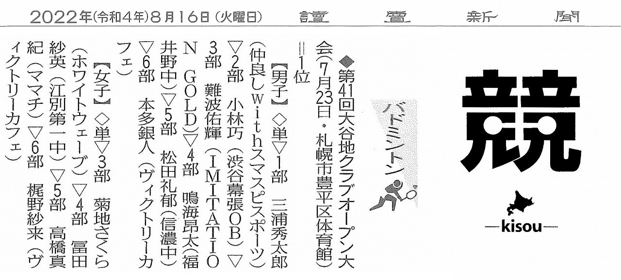 大会結果掲載【北海道新聞(札幌版)】